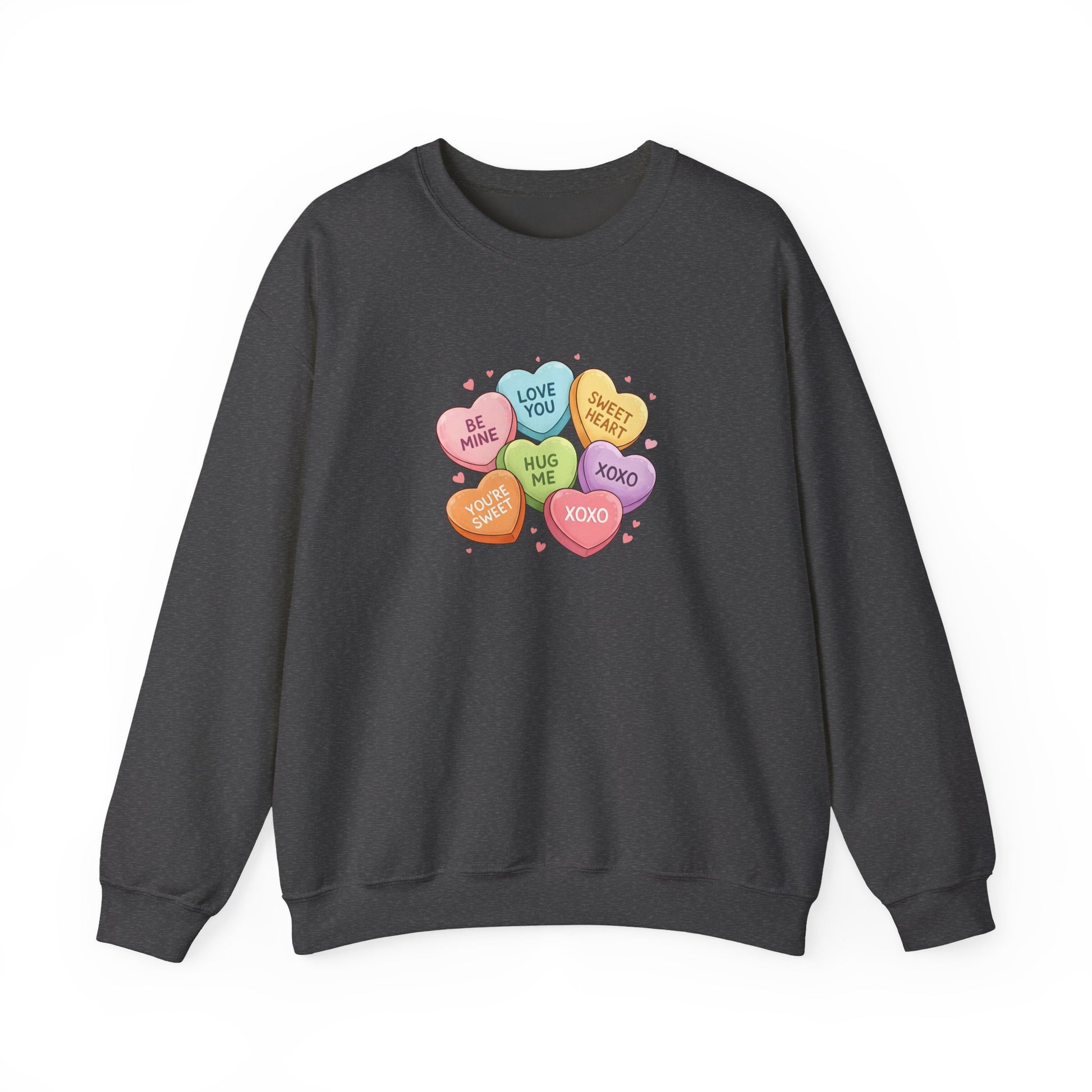 Sweeten up your Valentine’s Day look with this adorable sweatshirt featuring colorful candy hearts. Cozy, playful, and full of nostalgic charm, it’s perfect for spreading love all season long. Whether you’re celebrating with friends, your valentine, or just treating yourself, this sweatshirt brings all the festive feels with a comfy fit you’ll want to wear on repeat.