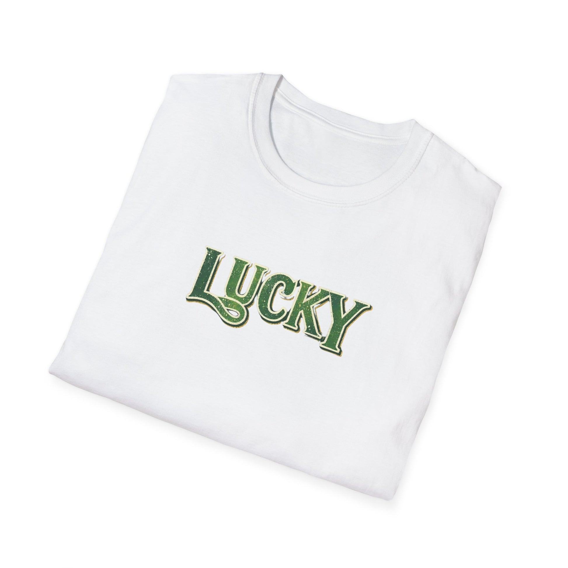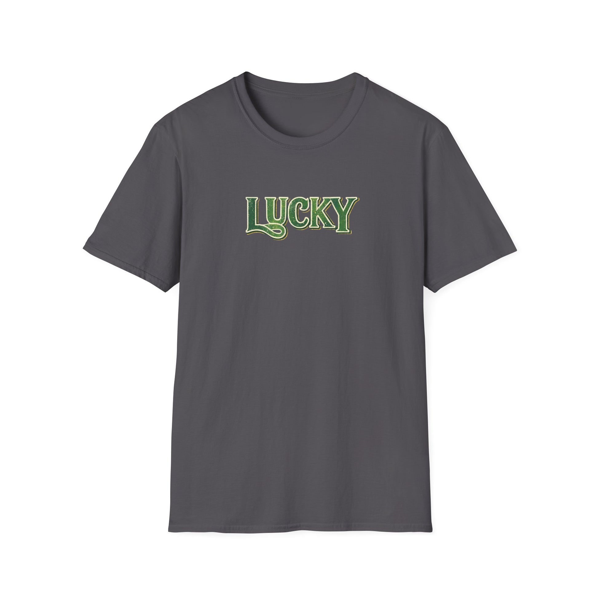 - Faded/distressed “lucky” print for a vintage look